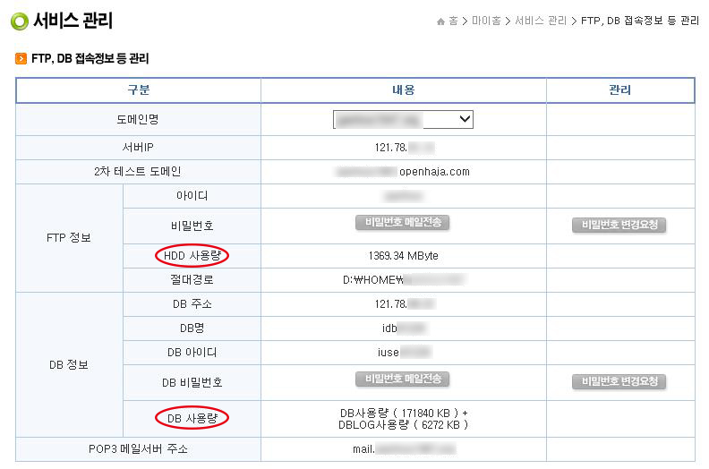 3. 고객님의 DB현황(사용용량)을 보실수 있습니다.